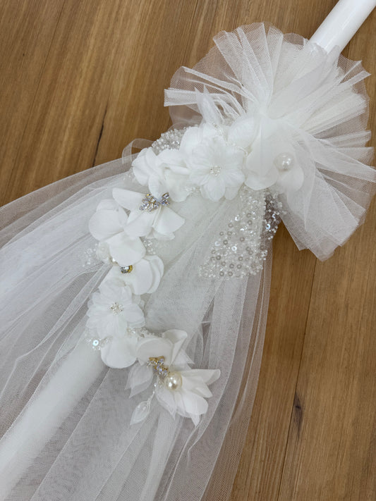 Orthodox Christening Candle - Ribbon Bow & Tulle