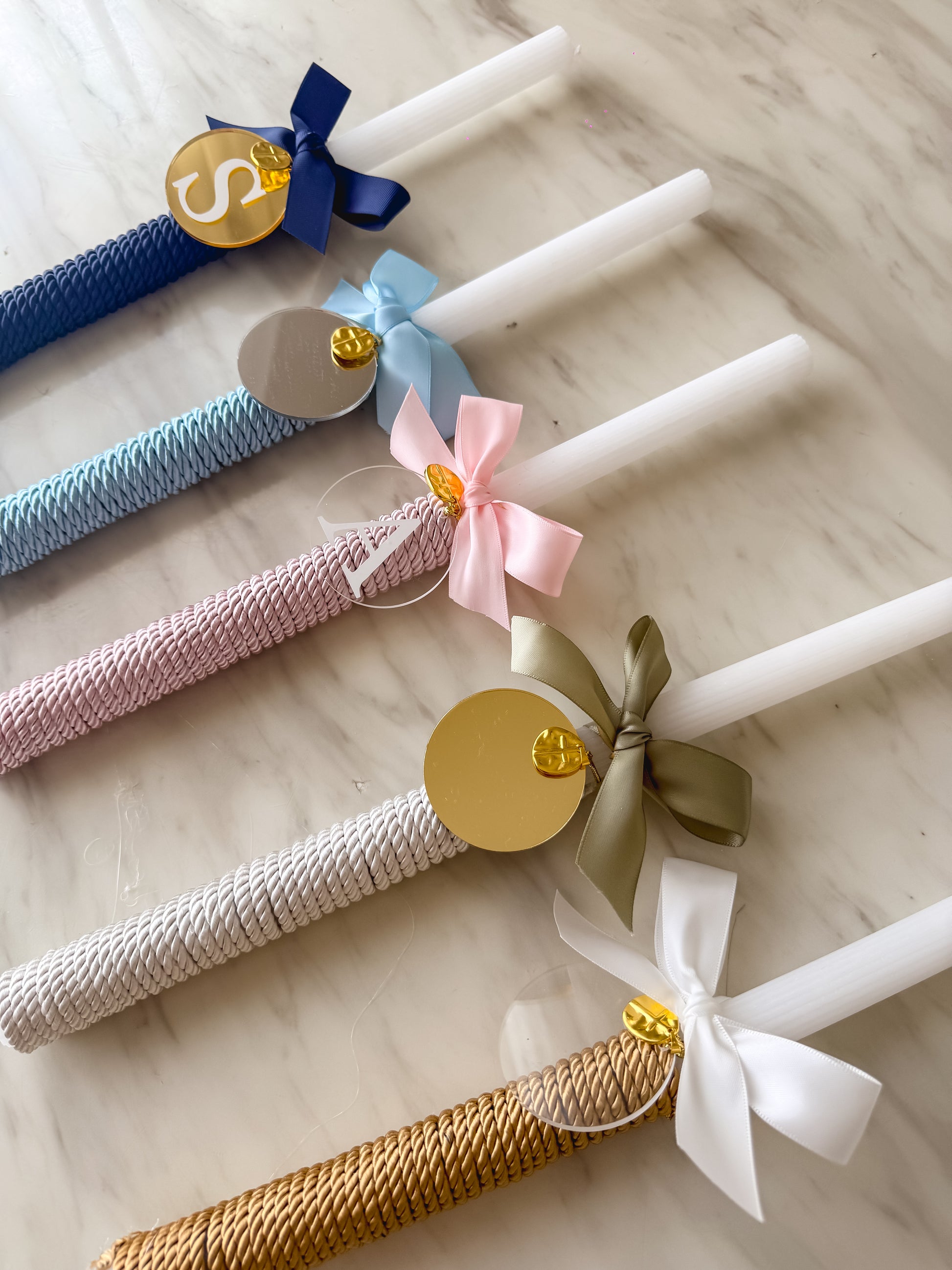 Each candle is custom made to your colour specifications and finished with a white initial, Includes gold cross pendant š¤