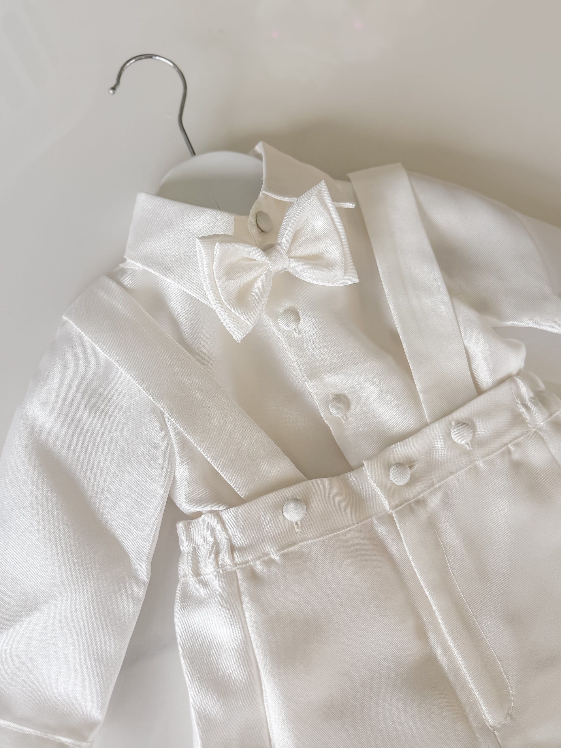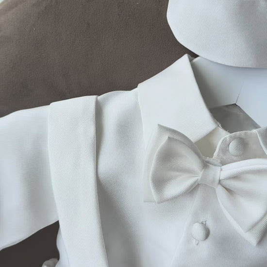 Stand out on your special day with our Romeo Mikado Shirt & Suspender Set! Made from luxurious mikado fabric, this set includes a matching hat and shoes for a complete look. The pants are also made with stretch around waist for comfort and flexibility.